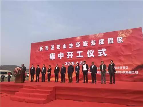 2018年4月20日上午,长春莲花山生态旅游度假区隆重举行“2018年重点项目集中开工仪式”。度假区党工委书记、管委会主任邵大明,管委会副主任郝忠奇、世茂集团东北区运营开发总经理李京华、澳海富春山居公司、国色天莲公司、恒大公司、长春莲花山旅游服务管理有限公司等项目业主单位相关负责人等200余人出席。出席活动的莲花山度假区管委会领导和全体项目负责人,共同挥锹动土为世茂开工项目奠基。